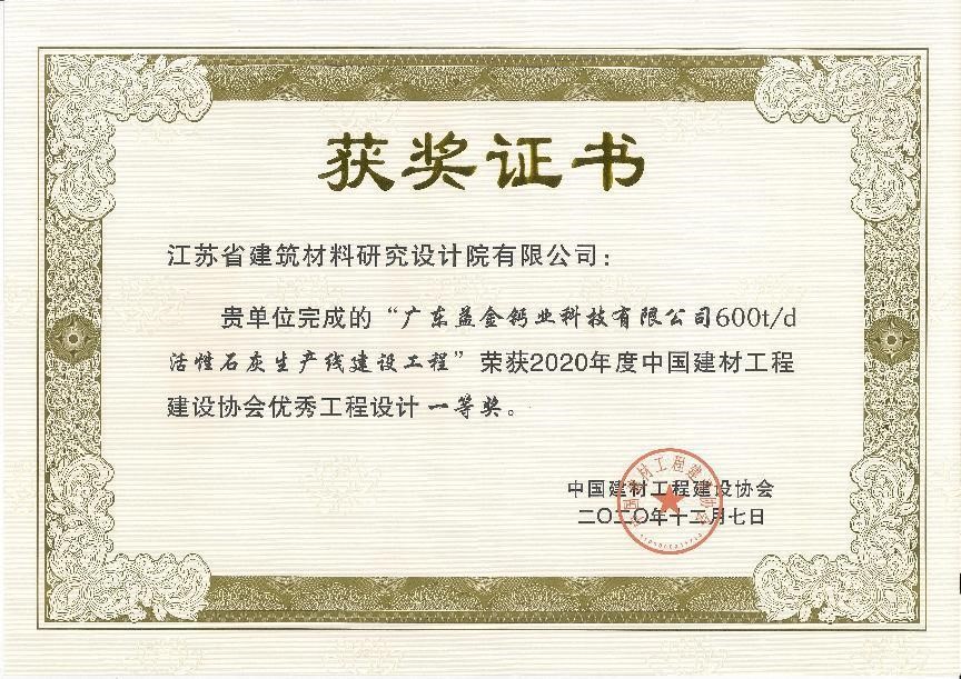 獲獎證書